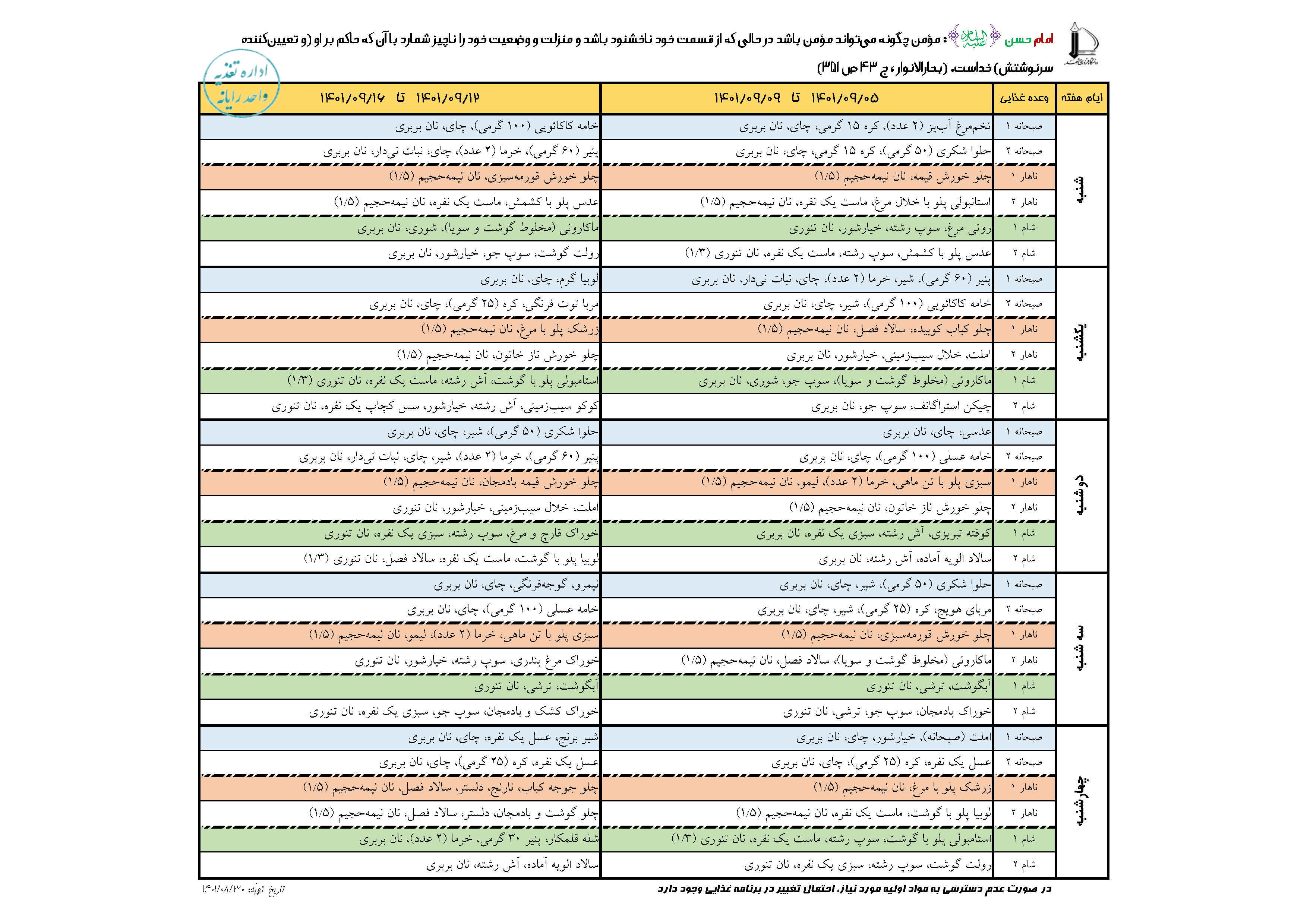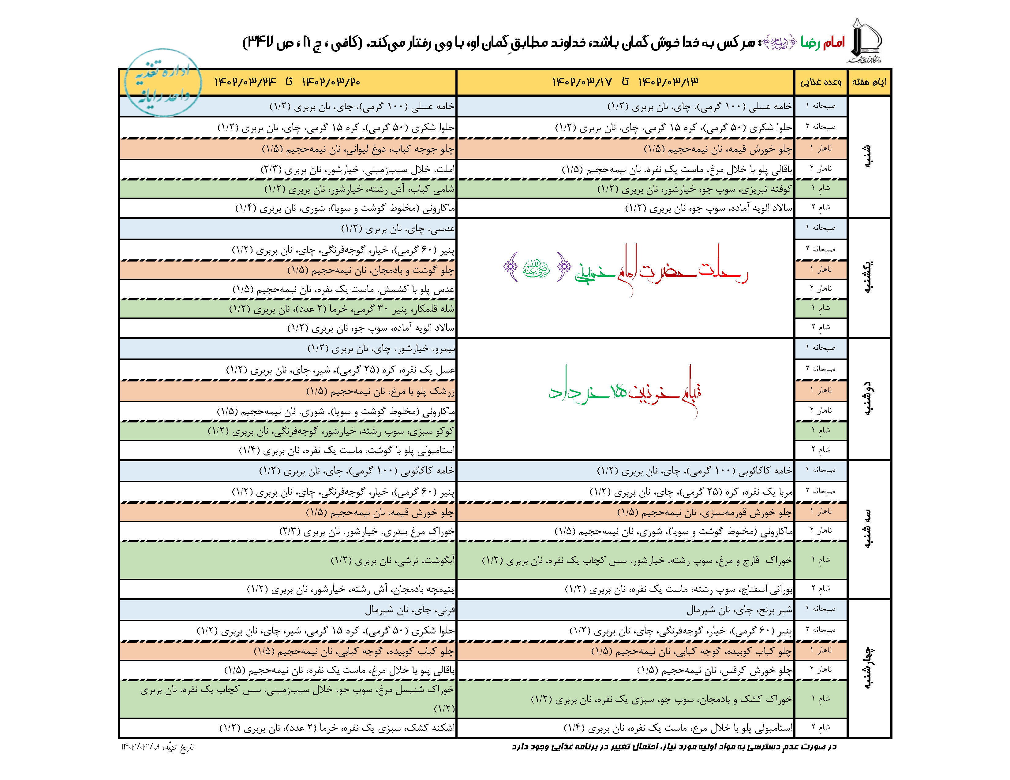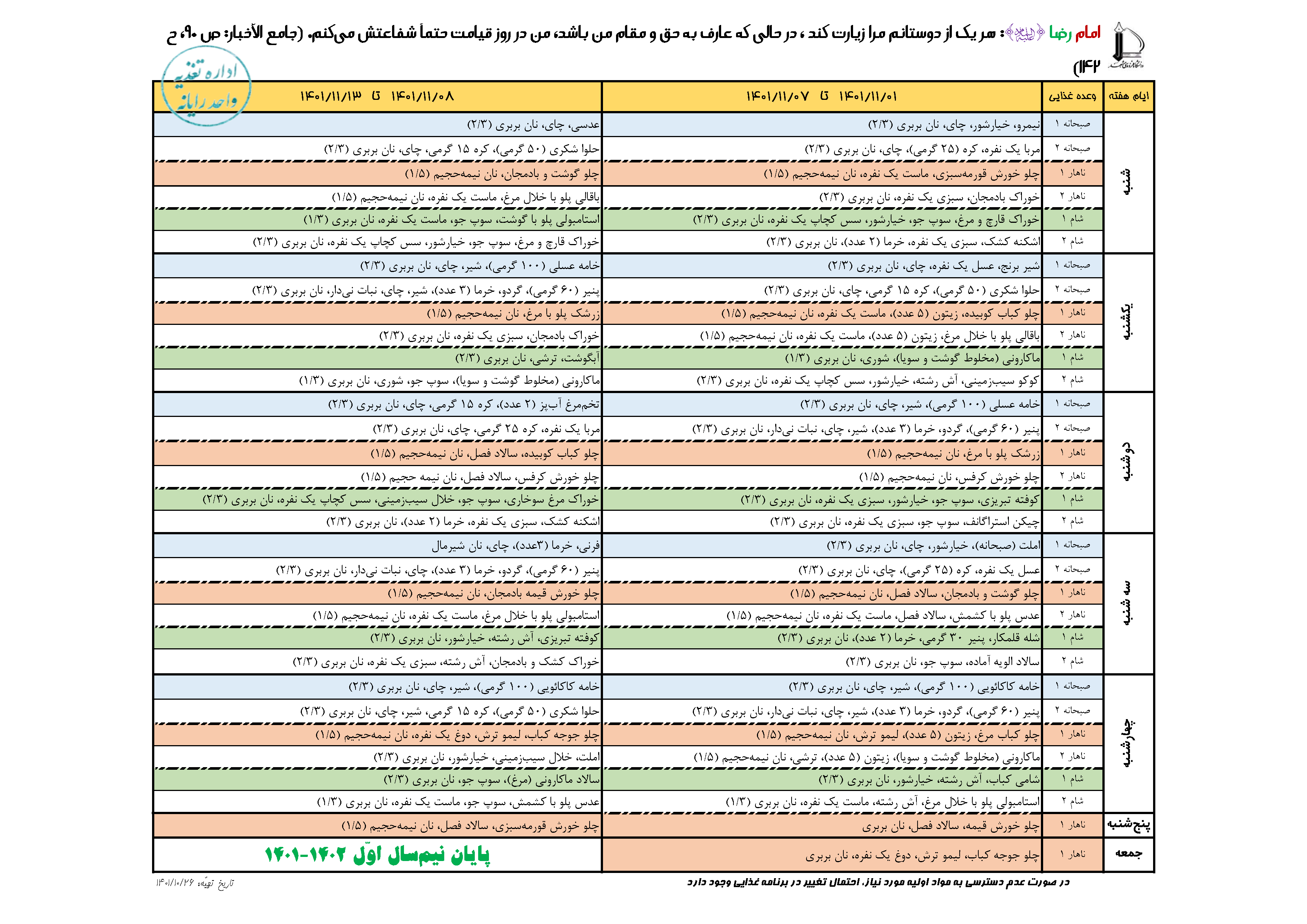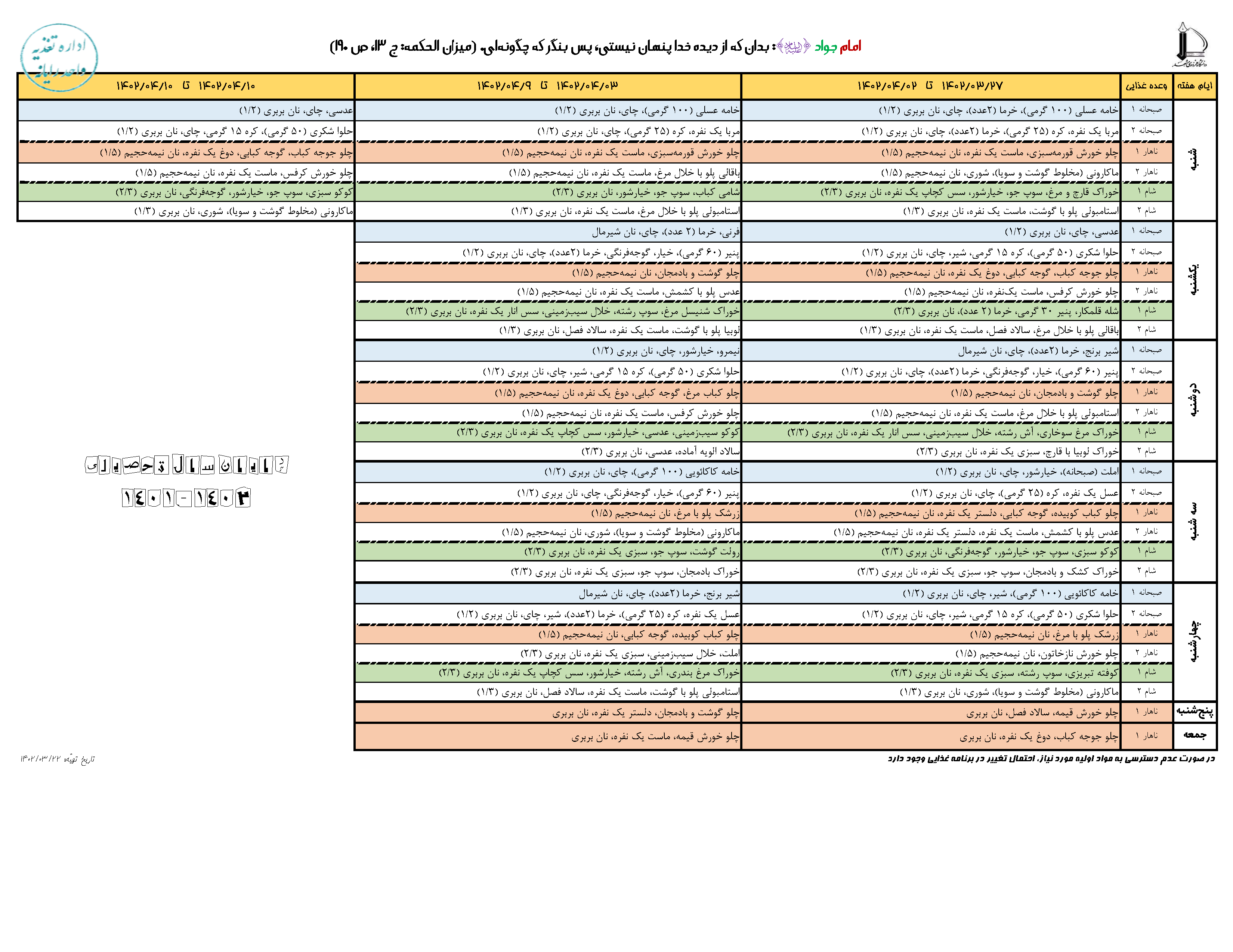 برنامههای غذایی سال تحصیلی ۱۴۰۳-۱۴۰۲