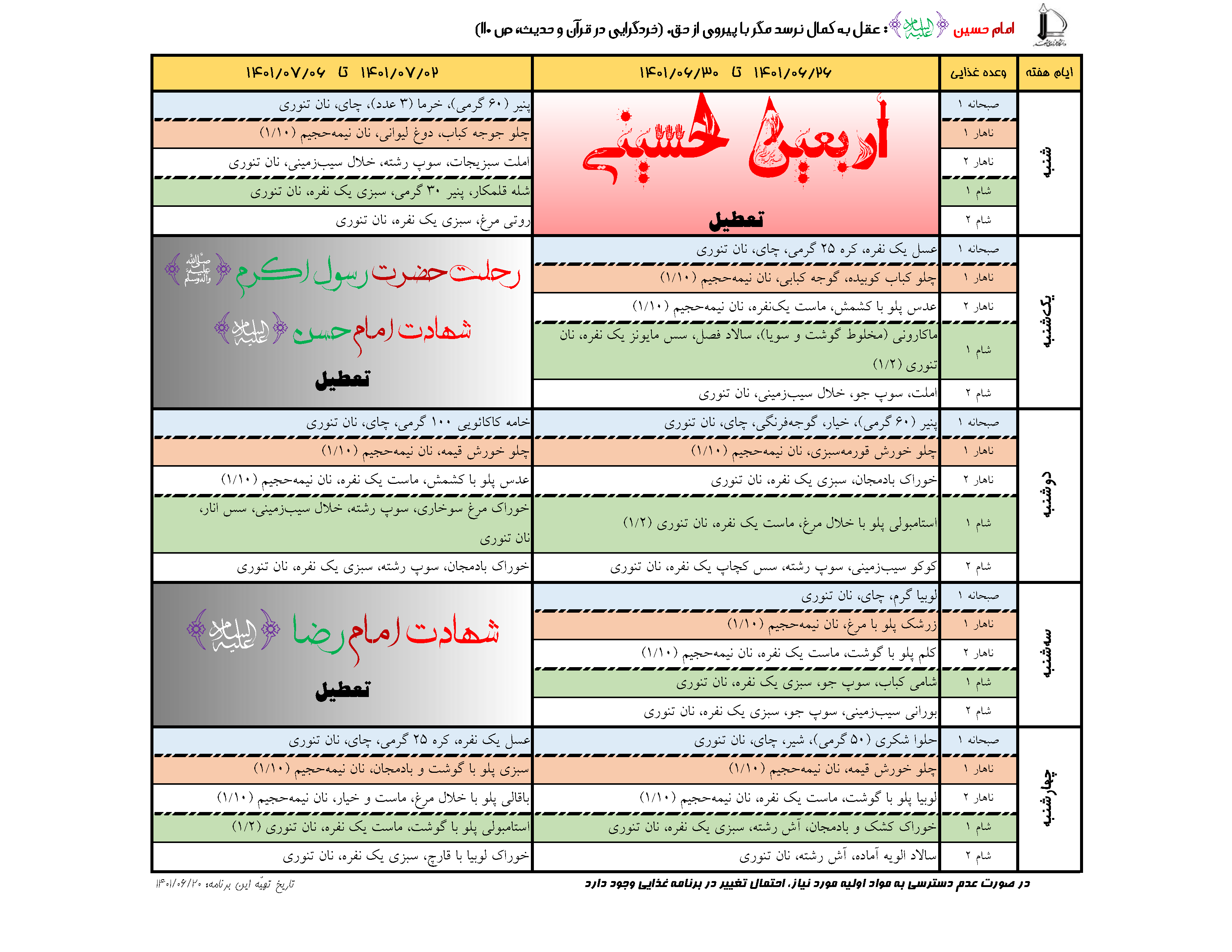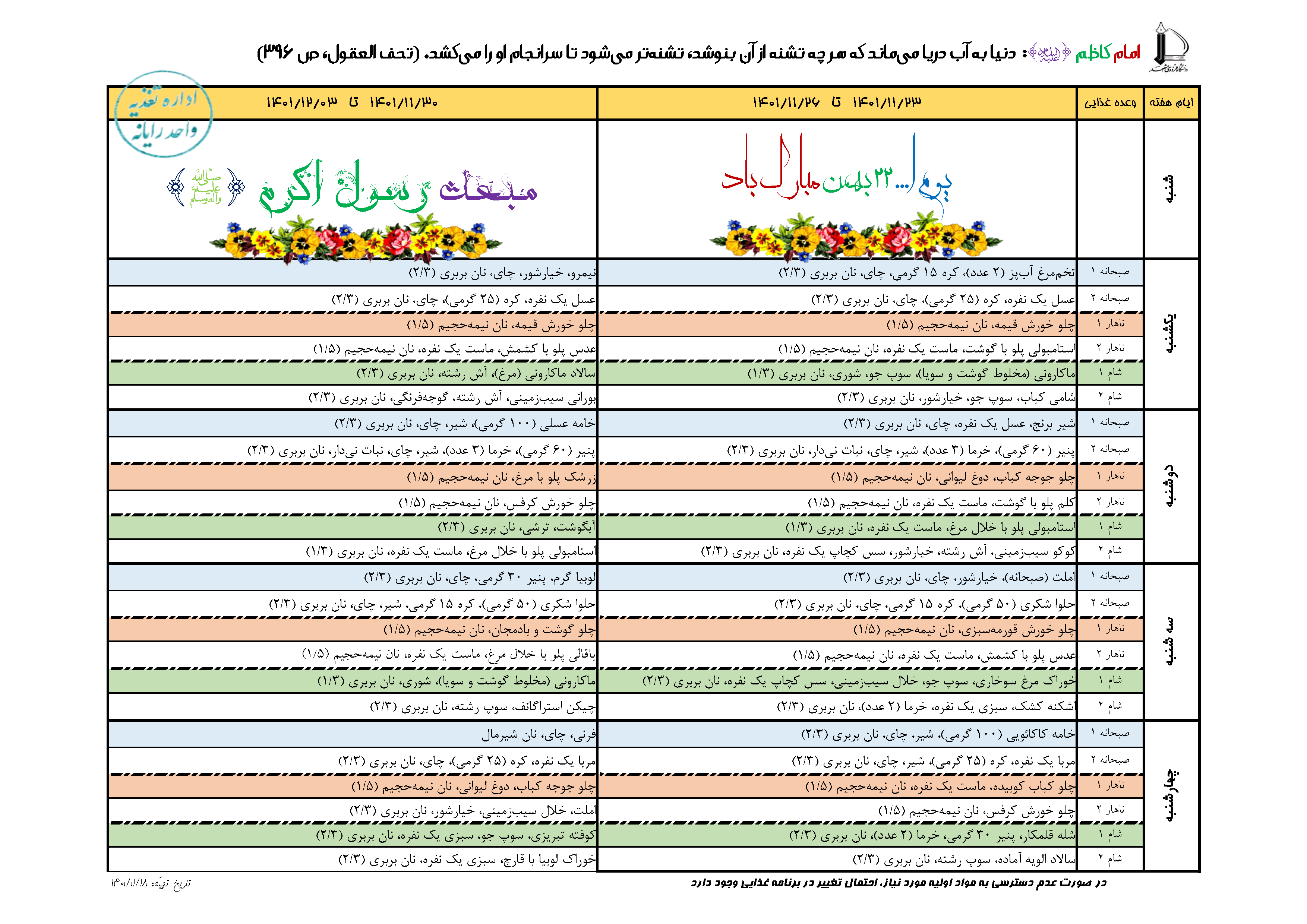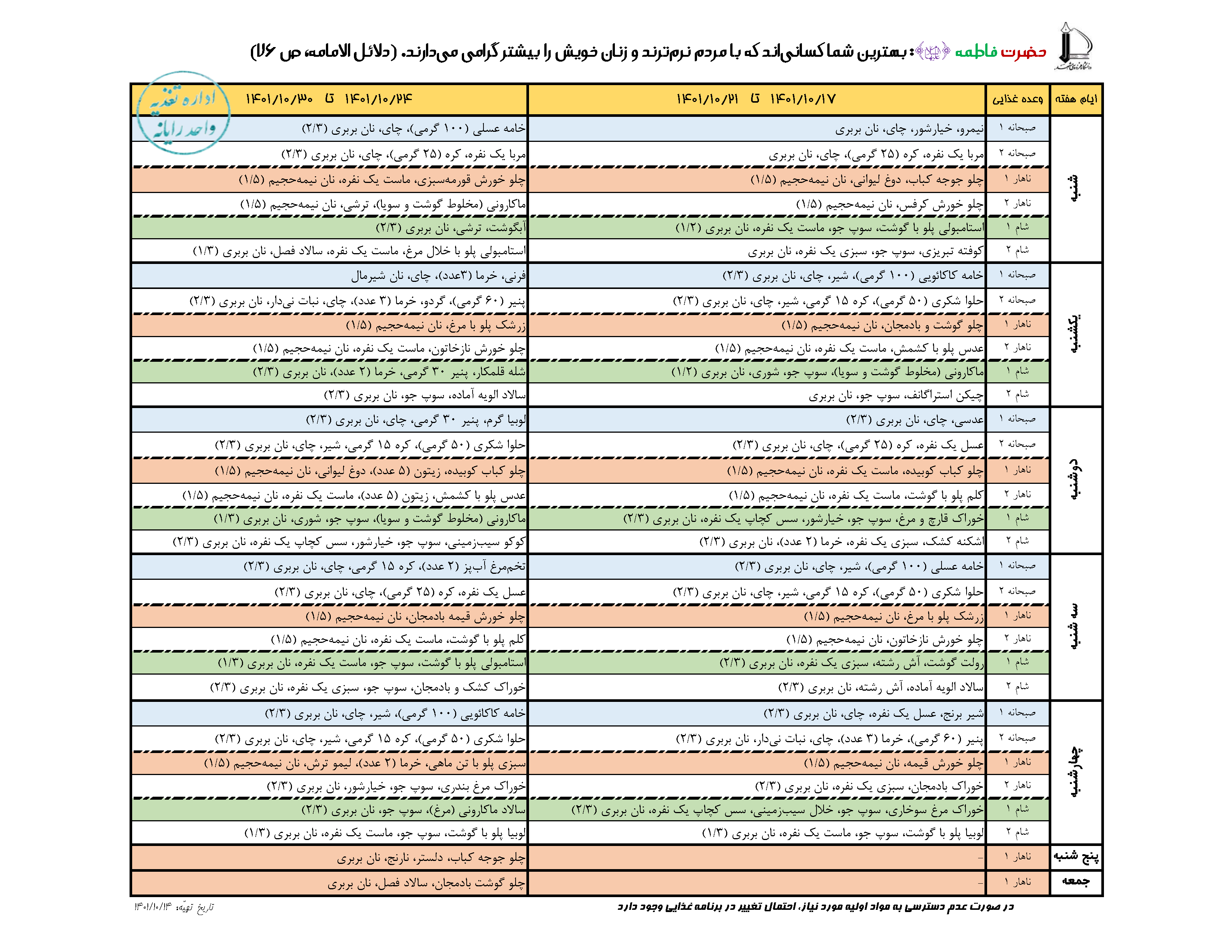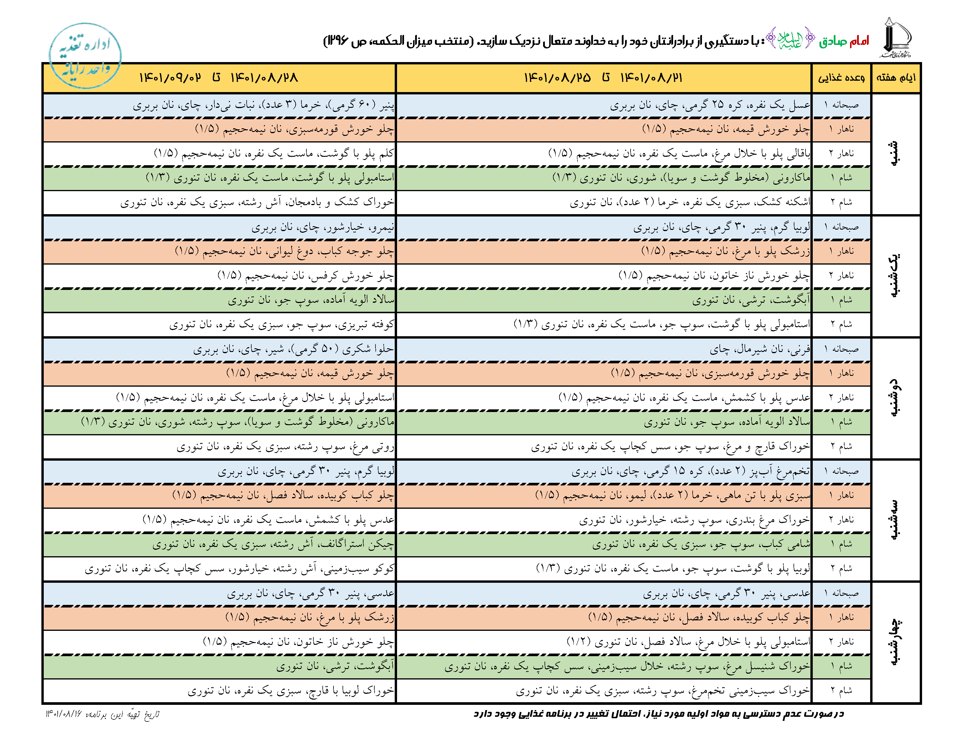 برنامههای غذایی سال تحصیلی ۱۴۰۳-۱۴۰۲