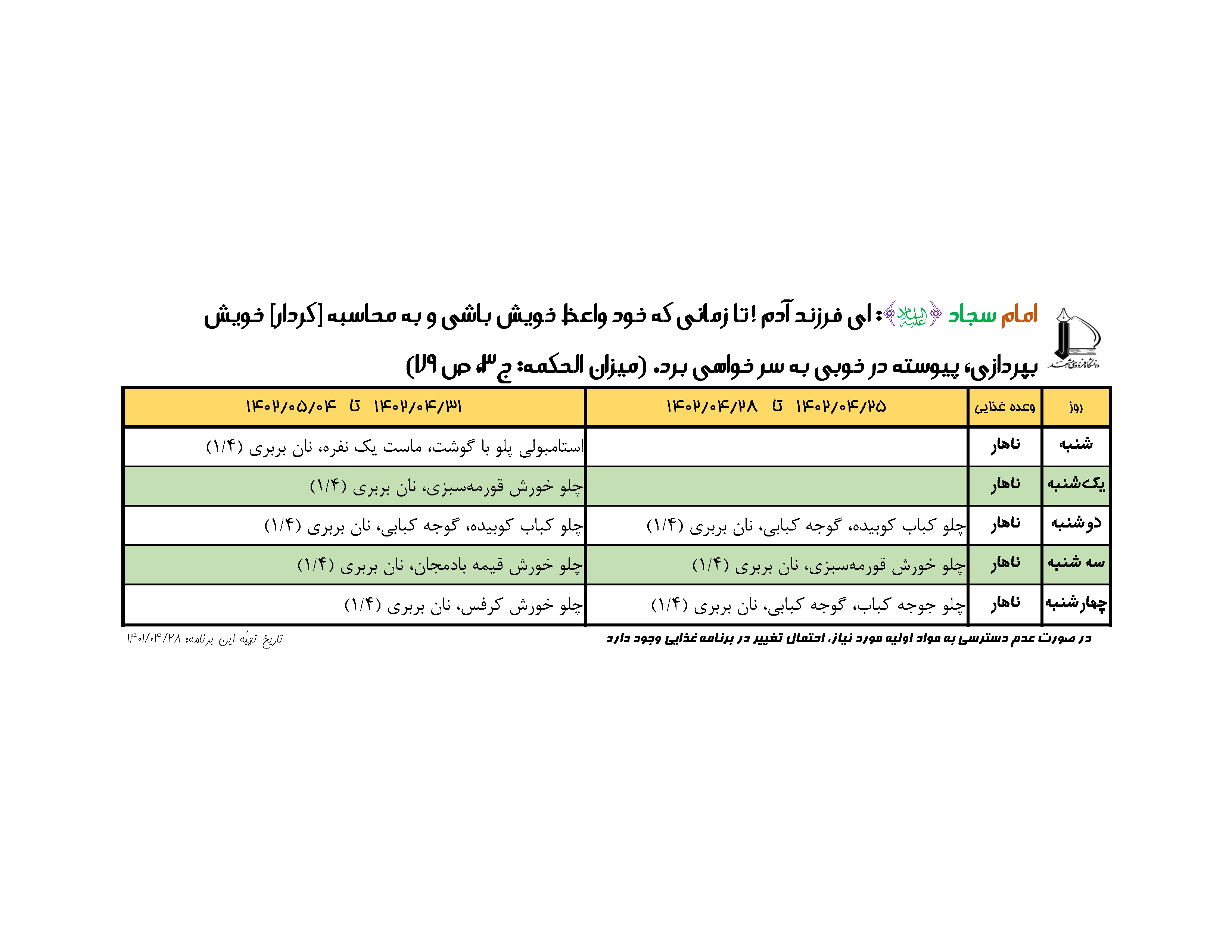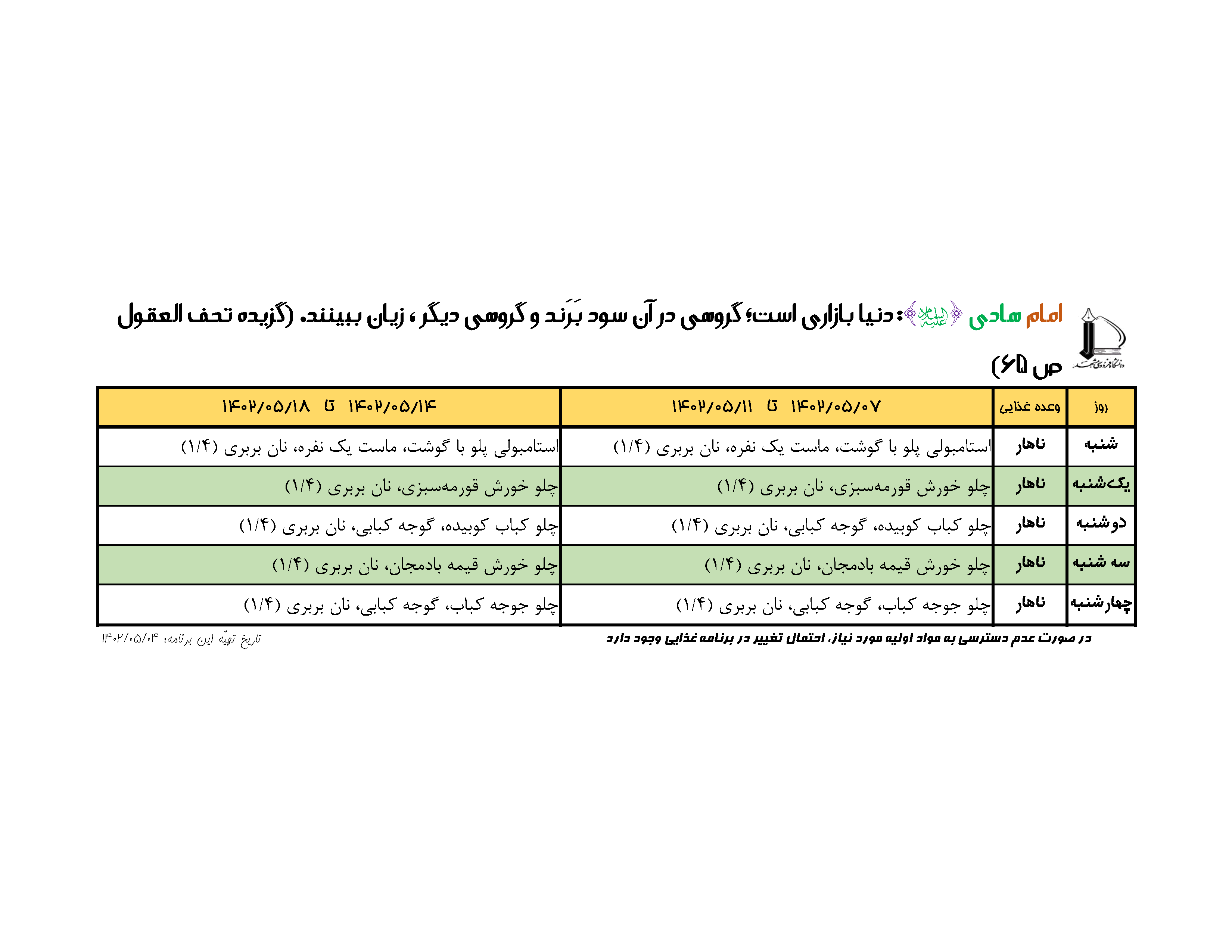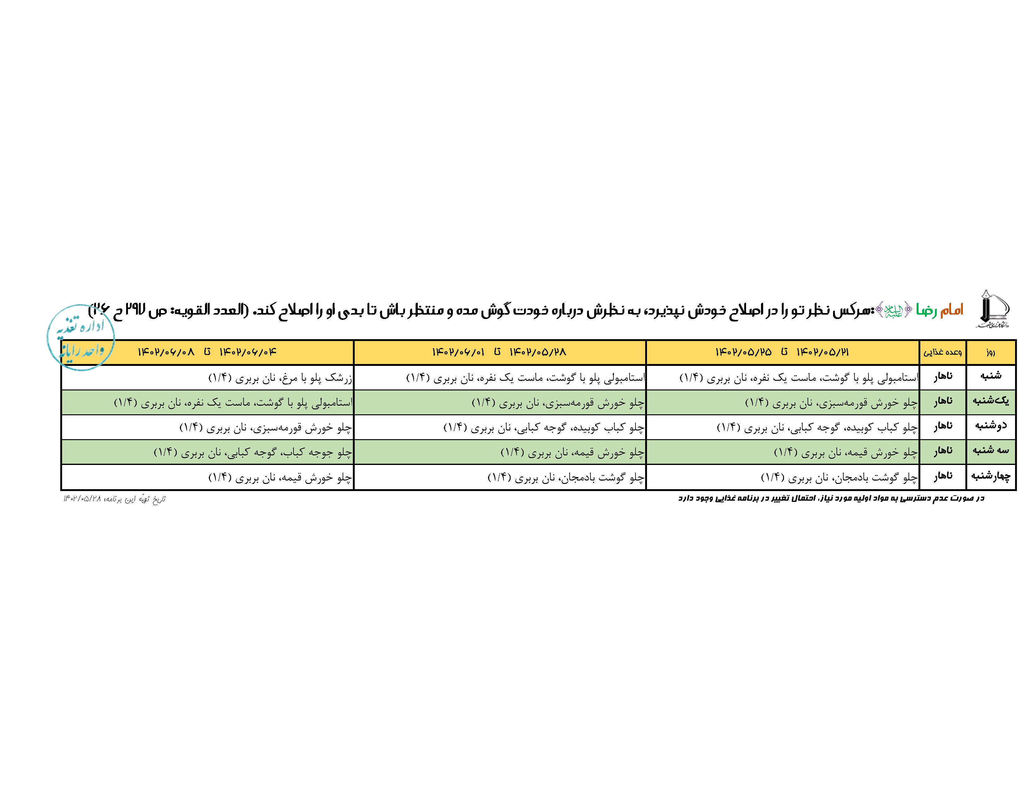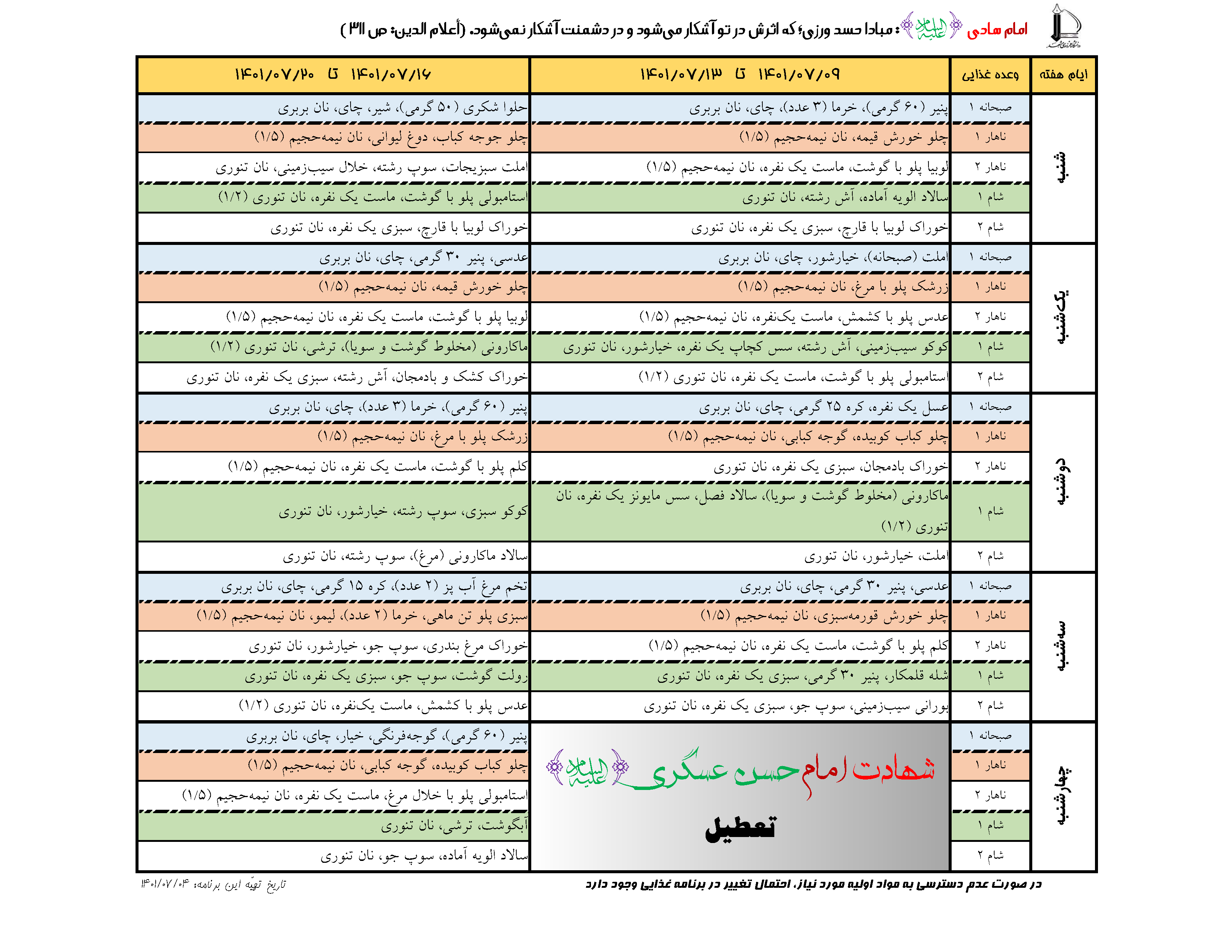 برنامههای غذایی سال تحصیلی ۱۴۰۳-۱۴۰۲