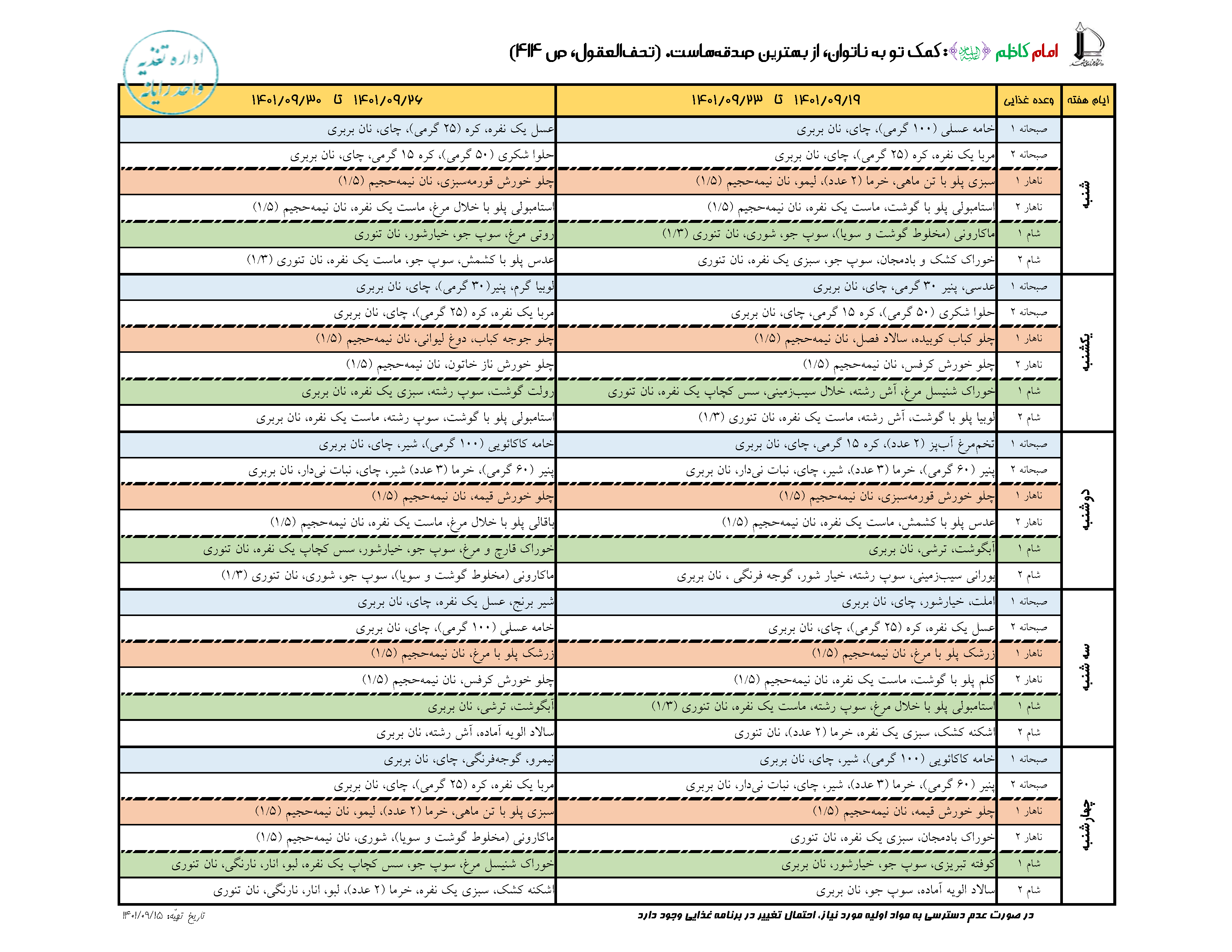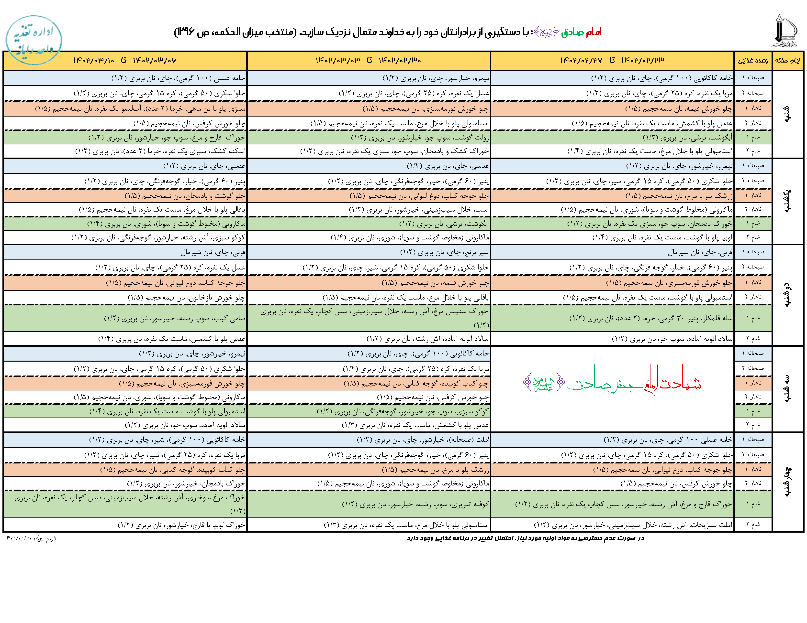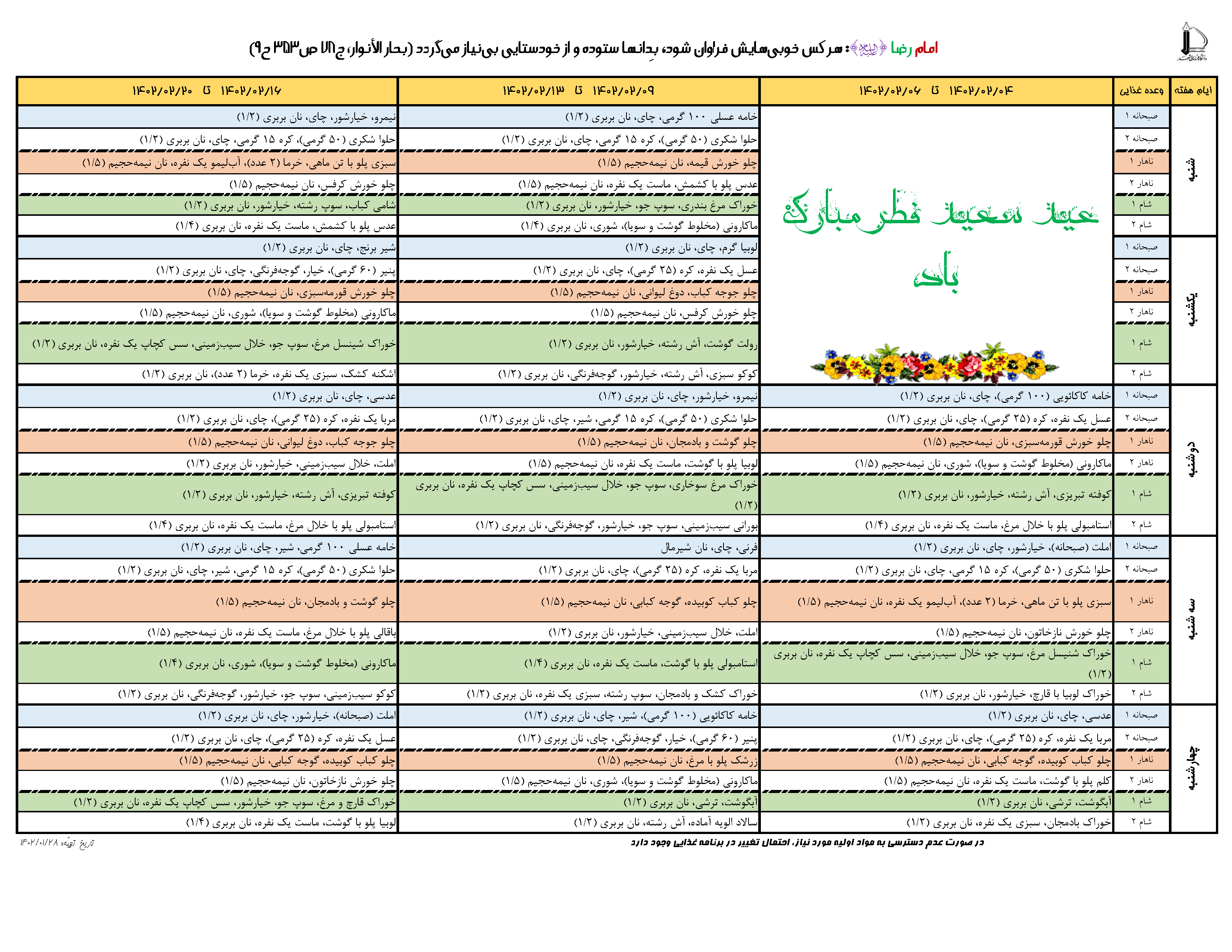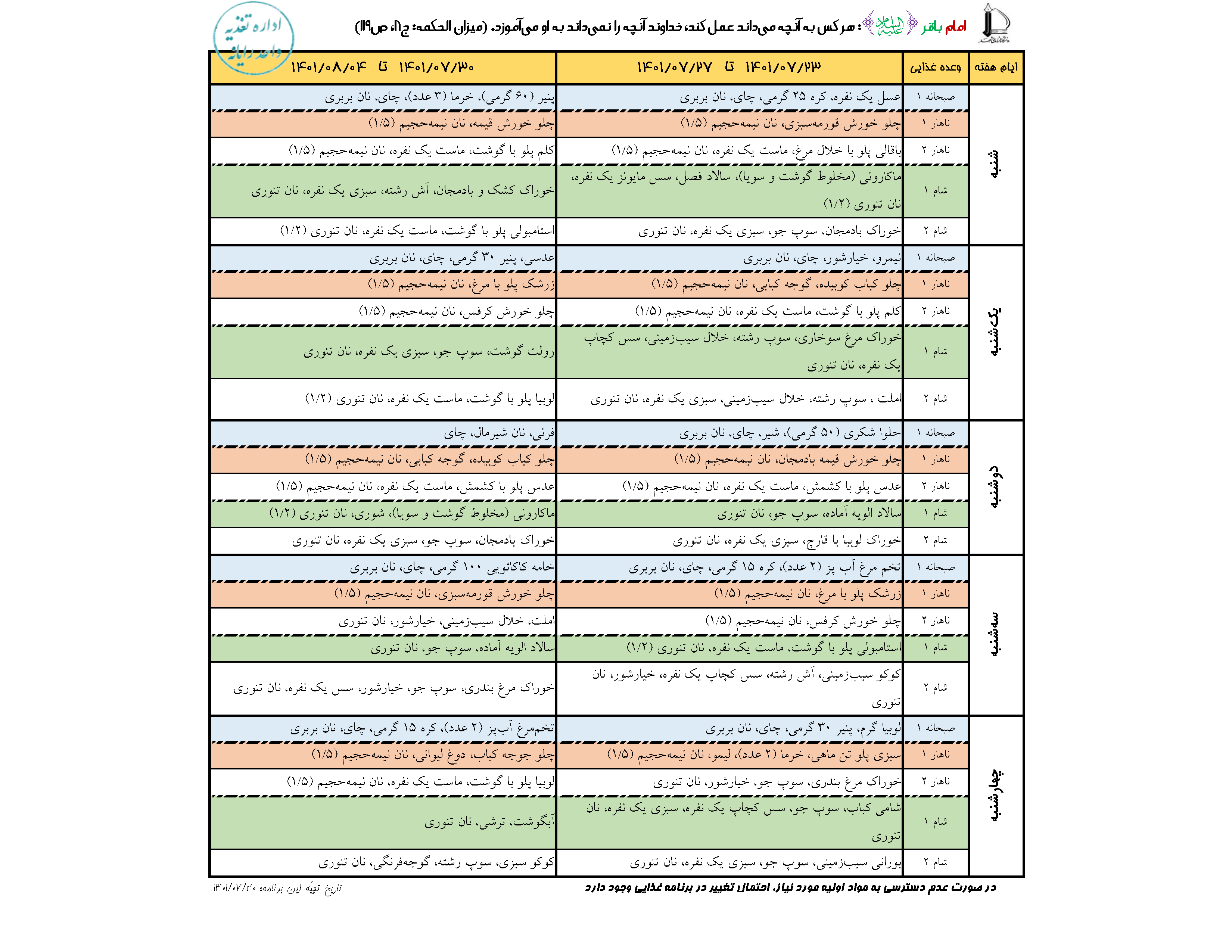 برنامههای غذایی سال تحصیلی ۱۴۰۴-۱۴۰۳