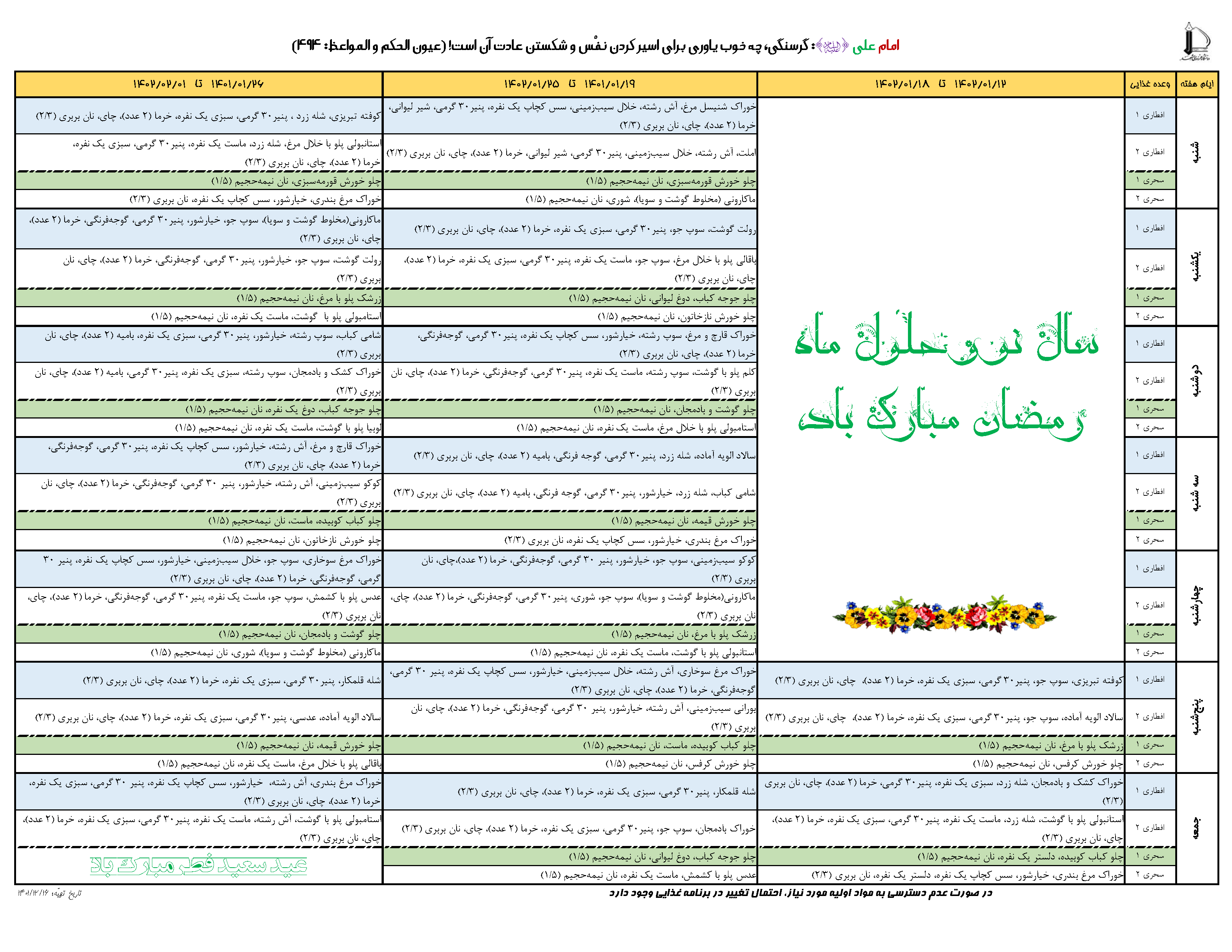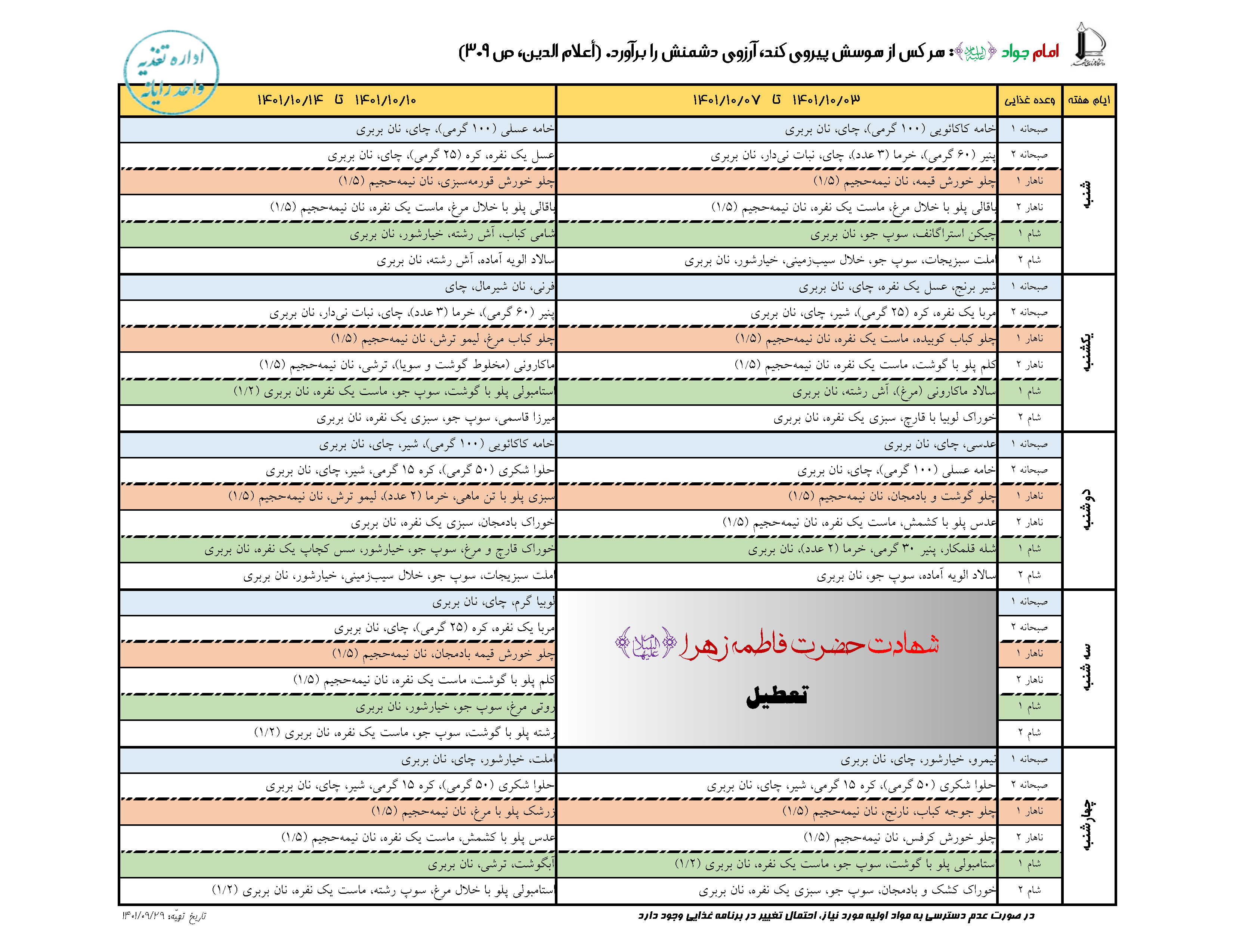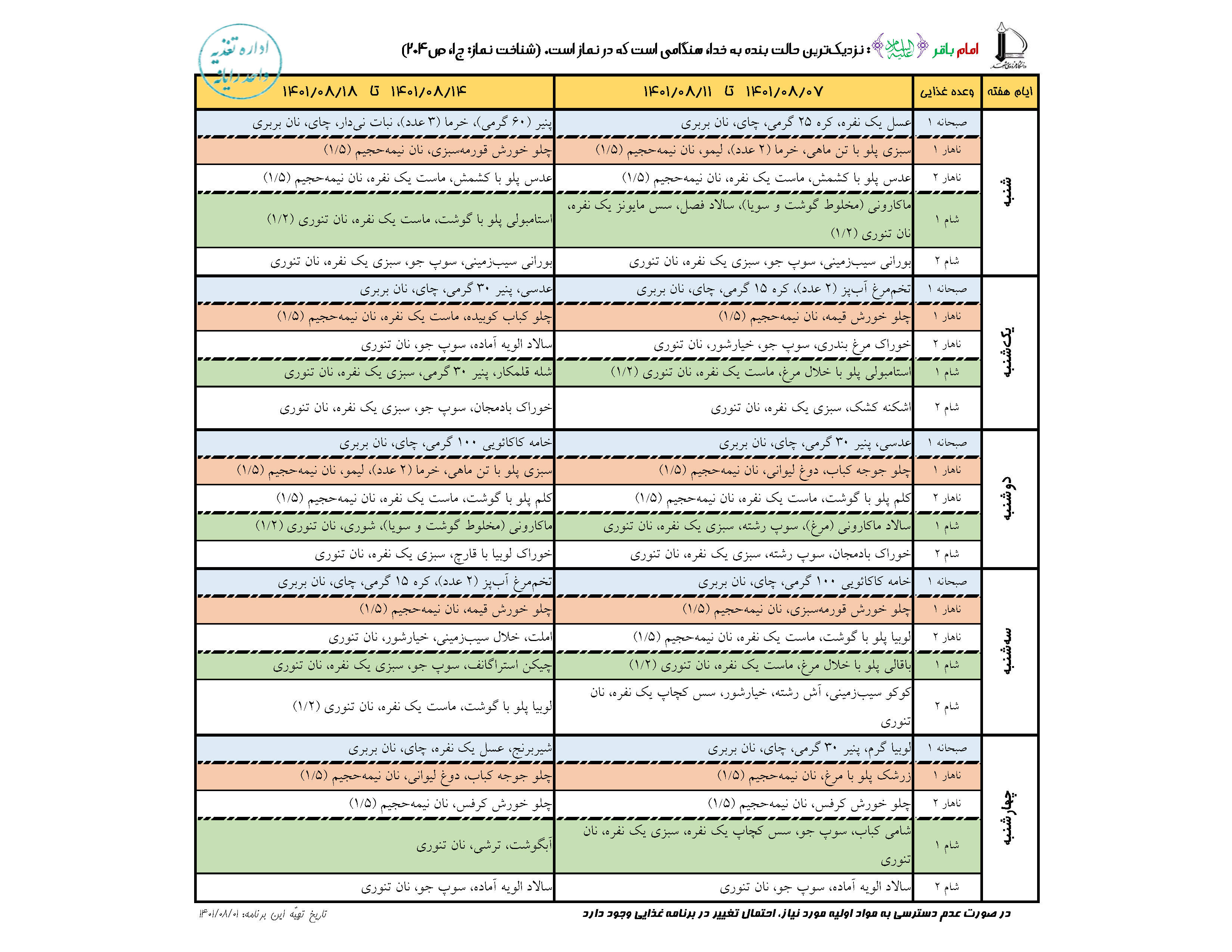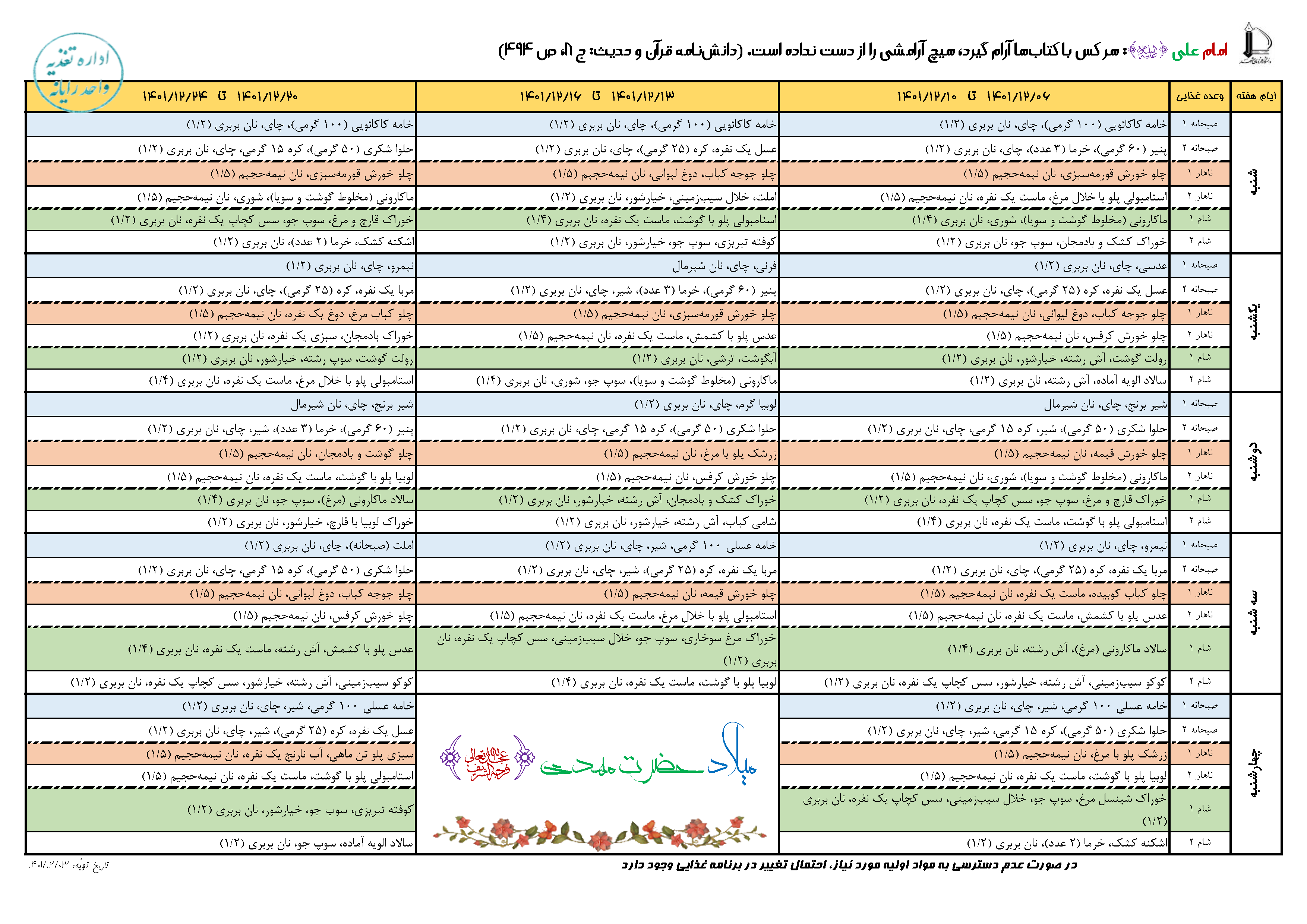 برنامههای غذایی سال تحصیلی ۱۴۰۴-۱۴۰۳